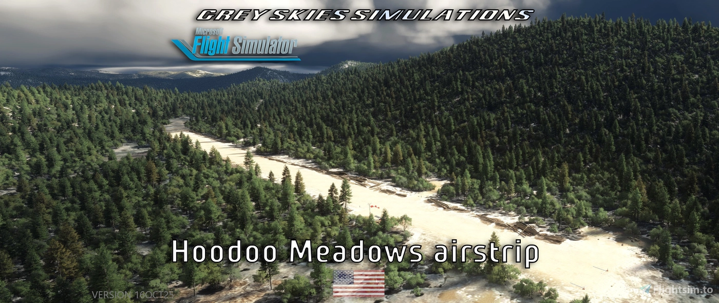 For backcountry pilots, ➡️ Hoodoo Meadows (4D2) offers a challenging and scenic destination high in Idaho’s rugged terrain. Sitting at 8,262 feet above sea level, it is the state’s highest official backcountry strip, featuring a 1,900-foot sloped gravel runway surrounded by dense forest and uneven terrain. The developer GreySkies has modeled runway logs, stumps, and obstacles consistent with the area’s rough-field environment, making careful handling essential during landing and takeoff. Additional details include helicopter pads, a water spawn point on nearby Yellowjacket Lake, and ambient wildlife, making it an ideal destination for bush flying enthusiasts looking for a remote and authentic challenge.
