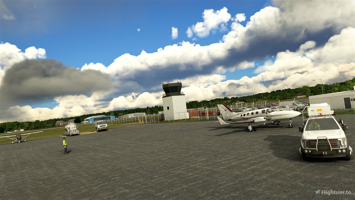 KPOU Hudson Valley Regional Airport is a towered airport in southern New York near the town of Poughkeepsie. It has 3 runways: 6/24, 7/25, and 15/33. The primary FBO is FlightLevel Aviation with other businesses located on the field such as Associated Air Group and Richmor Aviation. The airport received renovations recently which included a new ARFF facility in the northwest and a new campus for the Dutchess Community College. This airfield created by Community creator Windhover comes with various improvements, such as custom, handplaced taxiway lines and markings, Custom 3D models for most buildings including the terminal, AAG hangars, Richmor Aviation hangar, and more.