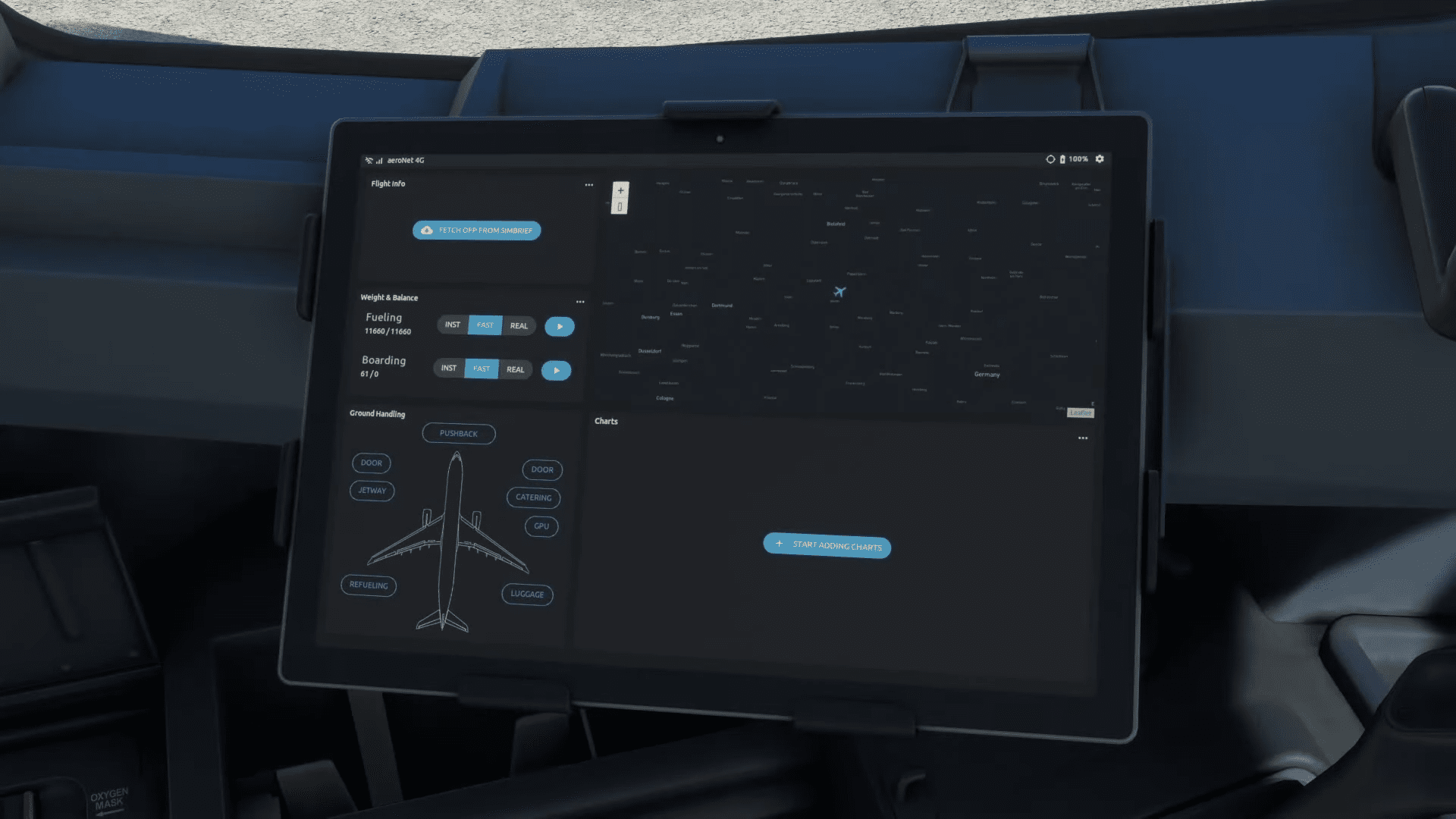 Besides all of that, the user will be able to check the charts on a dedicated app through the EFB. Navigraph and Aerosofts charts are both already supported. The last feature presented in the video was the ground handling menu from which the user will be able to control all of the movements around the aircraft.The release date and price are still unknown.
