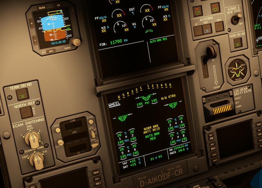 In the forum post, Mathijs started with previews of the cabin lighting in the Airbus A330. The Aerosoft team has done a superb job on the PBR, which affects the lighting as well. With the help of Asobo Studio’s SDK and lighting behaviour in Microsoft Flight Simulator, the team has achieved realistic results with the cockpit and cabin lights. Aerosoft seems to be giving a lot of love to the passenger cabin as well.