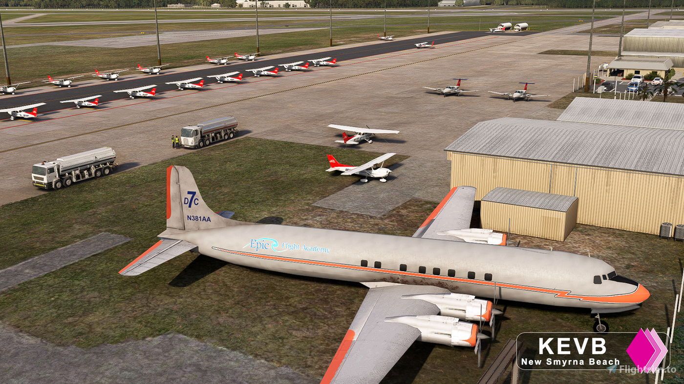 A new rendition of New Smyrna Beach Municipal Airport is now available for Microsoft Flight Simulator 2020. Situated just 10 miles south of Daytona Beach, New Ymyrna Beach Airport boasts a rich history, having served as a naval training facility during World War II. Today, it operates as a bustling hub for flight training, with Epic Flight Academy and AirGate Aviation among its key tenants. The airport’s active control tower supports the high volume of training traffic daily.