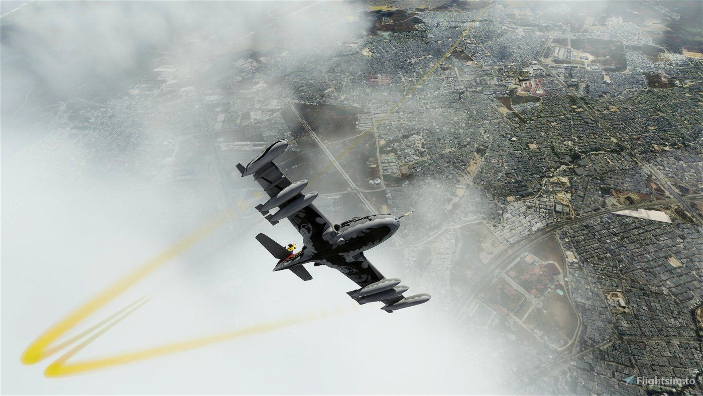 The Cessna A-37B Dragonfly freeware boasts a variety of features including two 3D model variants, a realistic fuel system, removable weapons, aerobatic smoke system, six-barreled minigun fire effects, and failure effects if the plane isn't respected. Moreover, the aircraft comes with a range of liveries representing countries like the USA, South Korea, Colombia, Chile, and more, although some liveries may have missing details due to limited reference images.