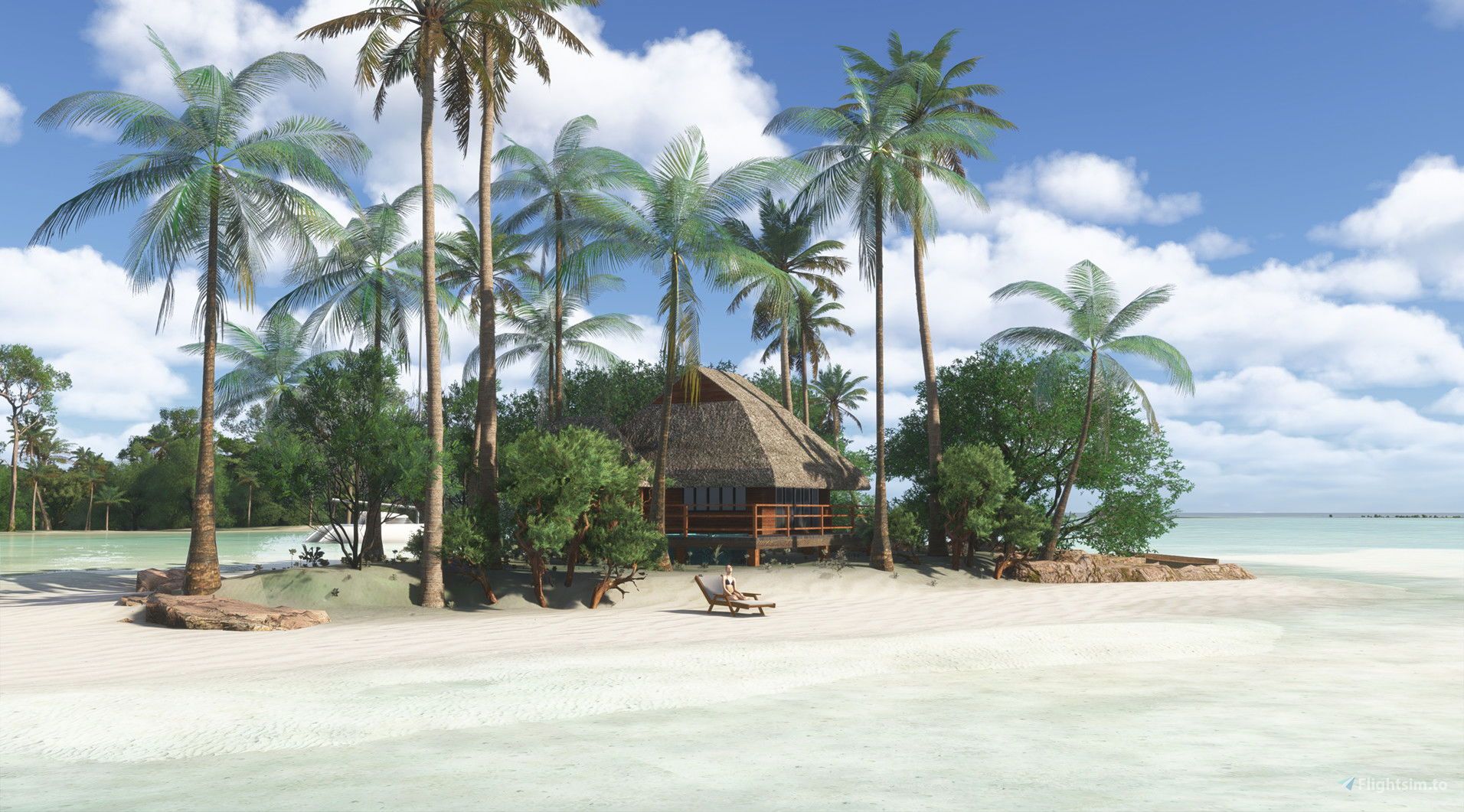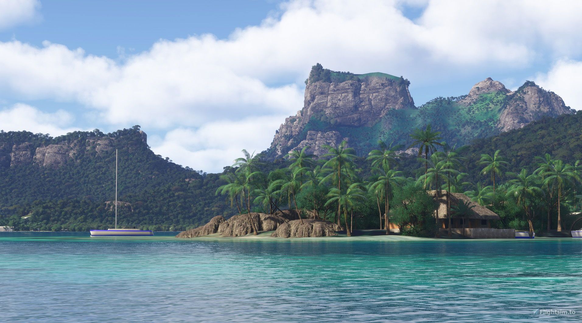 The add-on focuses on improving the visual and environmental fidelity of Bora Bora. Updates to major landmarks such as Mt. Pahiya and Mt. Otemanu refine the island’s terrain and elevation profile. The mod introduces additional tropical vegetation to better reflect the local flora and makes several shoreline adjustments, including new 3D rock models, to enhance the coastal experience.