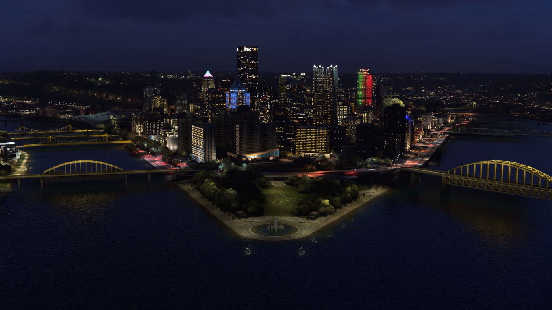 Pittsburgh, located at the confluence of the Allegheny, Monongahela, and Ohio Rivers, is known for its distinctive cityscape shaped by steep hills, historic neighborhoods, and a dense network of bridges. Dfflyer Direct has just released ⭐ Pittsburgh City & Bridges Pack for MSFS2020 and MSFS2024 that offers a significant upgrade to the default scenery.