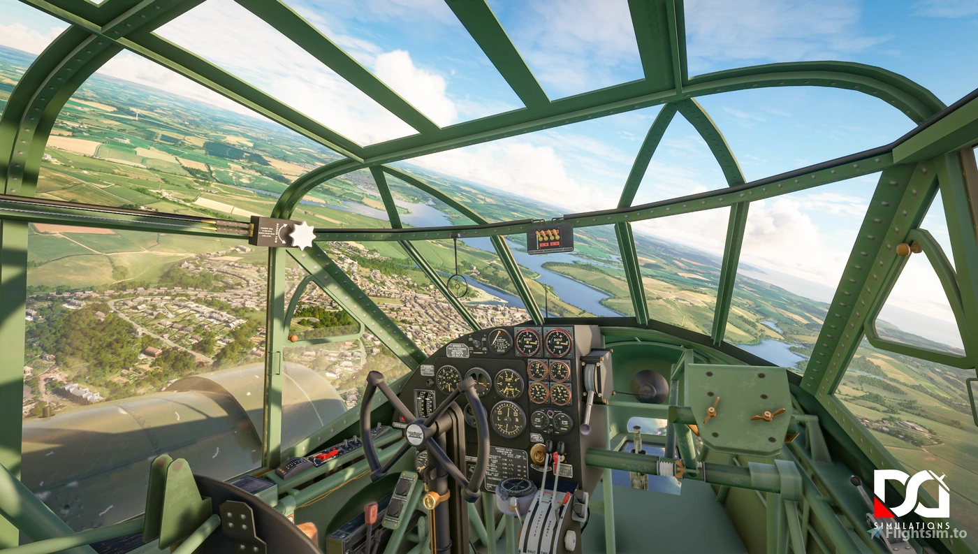 The aircraft has been built natively for Microsoft Flight Simulator, making use of modern PBR rendering techniques, full simulator compatibility, and optimised performance. A fully clickable cockpit features authentic instrumentation and working systems appropriate to the Mk I. Immersive touches such as functional bomb bay doors, opening cockpit windows, and interactive crew stations add to the atmosphere, making the aircraft suitable not only for historical RAF operations but also for virtual airshow flying and classic aviation enthusiasts.
