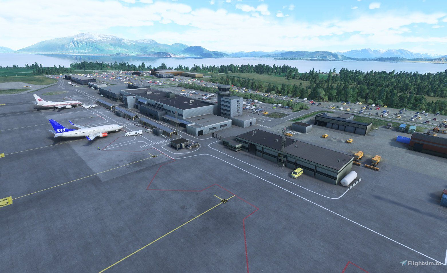 ENAL, Ålesund Vigra is an airport located in Norway on the westcoast of Sunnmøre. The airport is on an island, Vigra, with strong winds blowing in from the Atlantic Ocean. The runway has a distinct runway profile. The airport has domestic flights as well as direct International flights to Alicante - Spain, Copehagen - Denmark, Kaunas - Lithania, Amsterdam - Netherlands and Gdansk - Poland. Community Creator artogsta has released their rendition of ENAL back in January 2023, but it has seen a lot of updates recently, constantly improving the scenery. It has now came to a final version... the developers believes!