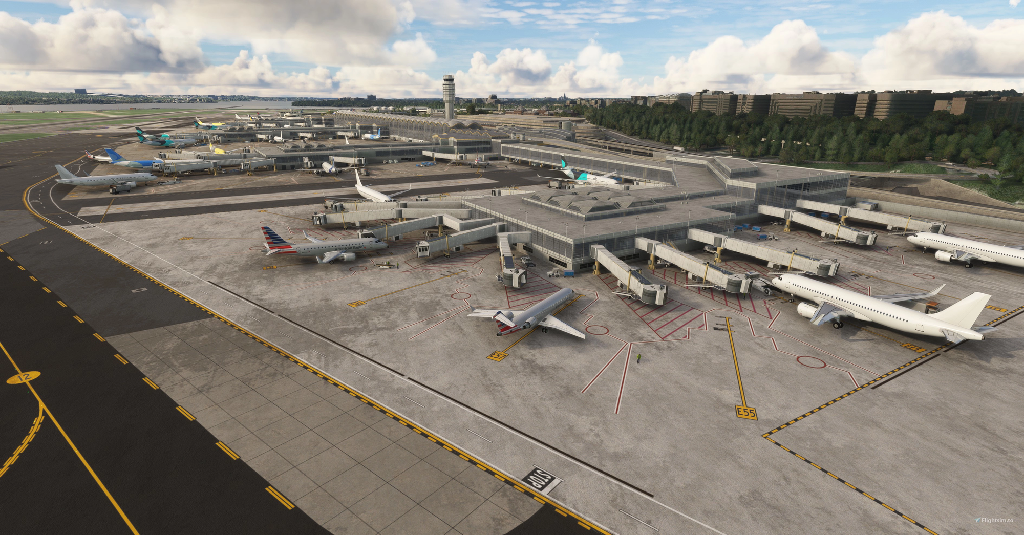 FeelThere has released a detailed scenery add-on for ⭐ KDCA for Microsoft Flight Simulator. Ronald Reagan Washington National Airport (ICAO: KDCA, IATA: DCA) is a key airport serving the United States capital, located in Arlington, Virginia just five miles from downtown Washington, D.C. Its close proximity to the city center and iconic views of national landmarks during approach make it one of the most recognized airports in the country. Despite being constrained by strict noise regulations and limited runway space, DCA remains one of the busiest domestic airports in the United States. It features three runways, two main terminals, and is directly accessible via the Washington Metro, offering convenient public transport connections.