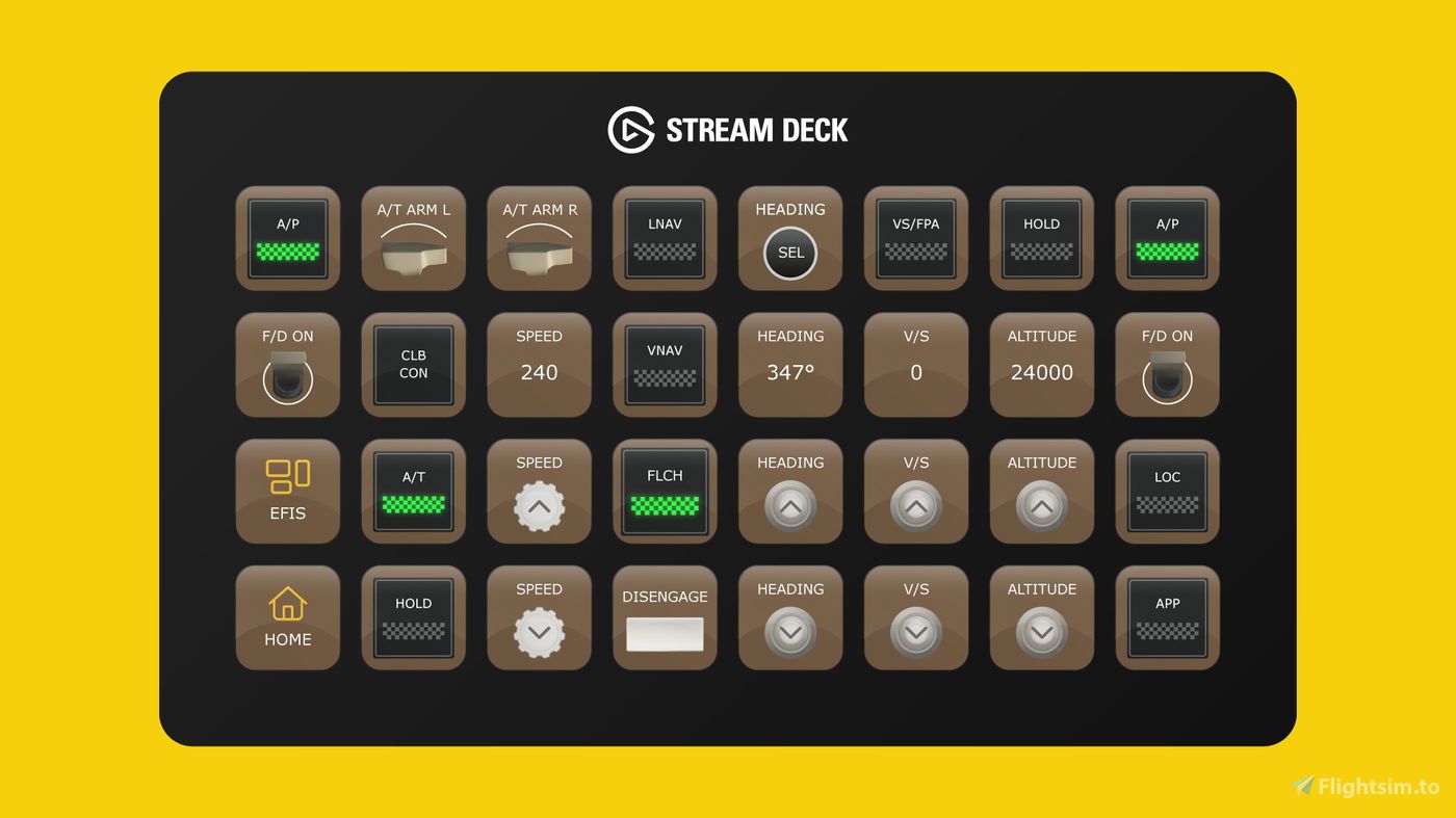 The PMDG 777-300ER Stream Deck Profile is offered in both 32 and 15 key versions. The 32 key profiles are compatible with the Stream Deck XL and Stream Deck Mobile for iOS and Android devices, while the 15 key profiles are designed for the Stream Deck MK.2 and Stream Deck Mobile for iOS and Android.