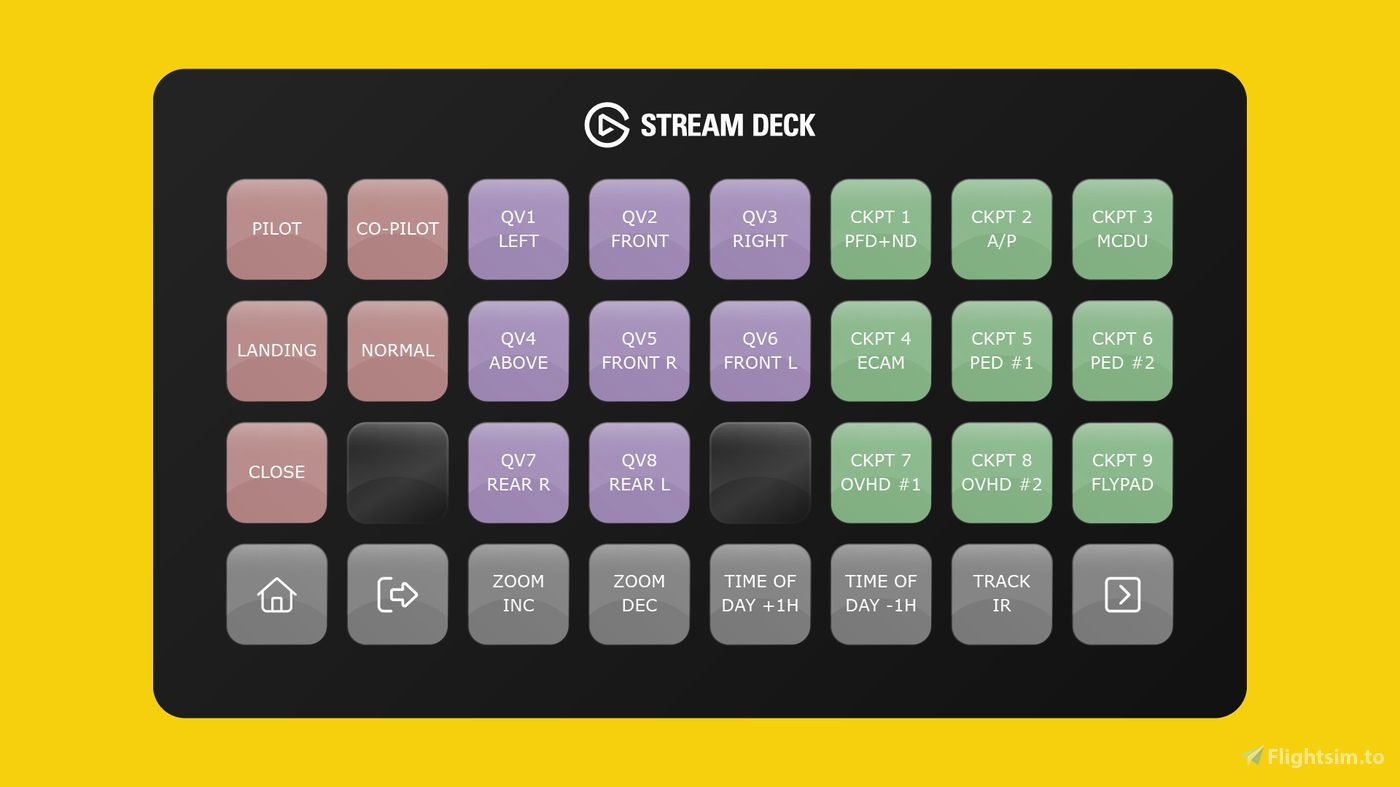 Complementing these autopilot panels, the AeroLens Pro - FlyByWire A380X - Stream Deck Profile ($19.00 USD excl. VAT) enhances the camera management experience. AeroLens Pro is designed to facilitate smooth camera transitions, helping you to easily access cockpit, instrumentation, showcase, and custom views. With built-in drone control and time-of-day adjustment, this profile adds a new dimension to visual customization, offering you a total of 21 enhanced views, multiple camera controls, and the ability to manipulate camera zoom and save/load custom views.