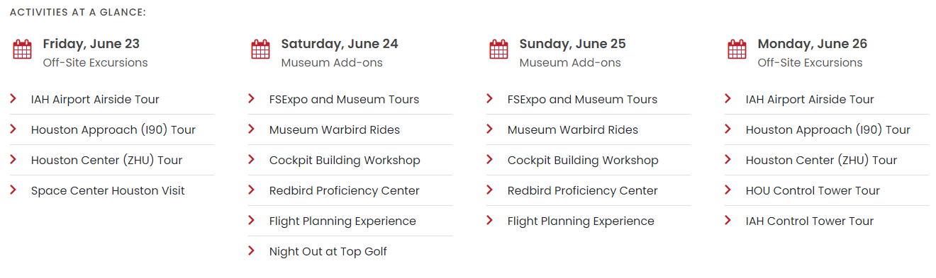 In addition to the conference itself, FlightSimExpo offers aviation-themed activities for attendees available throughout the weekend. This year, these include air traffic control facility tours, airport visits, a group tour of Space Center Houston, and home cockpit building workshops. Registration for these activities opens on April 15 at 10am CT. Attendees can register to attend the Houston convention by visiting flightsimexpo.com/register. To make travel easy, FlightSimExpo offers discounts on hotels, flights, and rental cars. Courtesy of Blackbird Simulations, Thrustmaster, and X-Plane, free shuttle busses are available throughout the weekend.