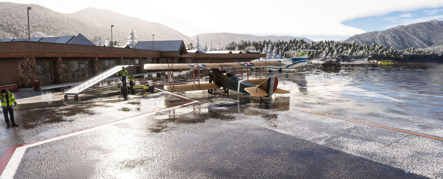 FLY2High has now released a detailed rendition of Aspen/Pitkin County Airport for Microsoft Flight Simulator. The developers have crafted hand-made ground textures that cover runways, aprons, paths, and roads, providing a realistic visual experience from both the cockpit and the tarmac. The airport's lighting system has been accurately modeled and dynamically positioned. In addition to the ground textures and lighting, FLY2High has created highly detailed models of all airport buildings, objects, and the surrounding environment.