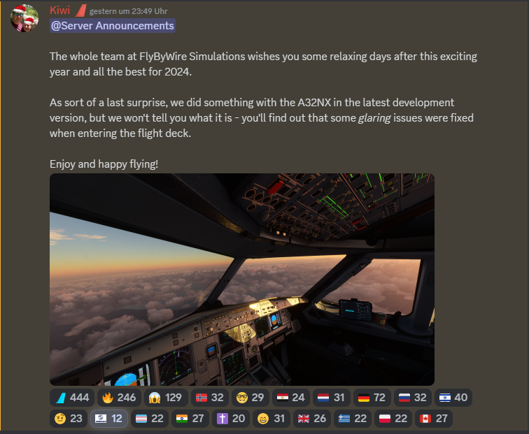 Last but not least, the update addresses noticeable issues in aircraft modeling, replacing overhead decals and making general improvements to the 3D model and textures. Notably, foldable armrests have been implemented. As usual, the update is accessible via the FlyByWire Installer app, provided users select the appropriate version.