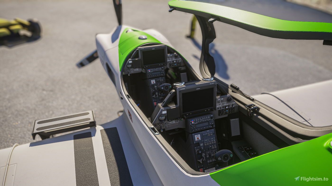 The aircraft add-on allows for extensive customization available through the Electronic Flight Bag (EFB). You can manage your payload configurations directly from the EFB without using the default simulator menus. The aircraft can be flown from either the front or rear seat, with or without passengers, and features multiple pilot and passenger options.