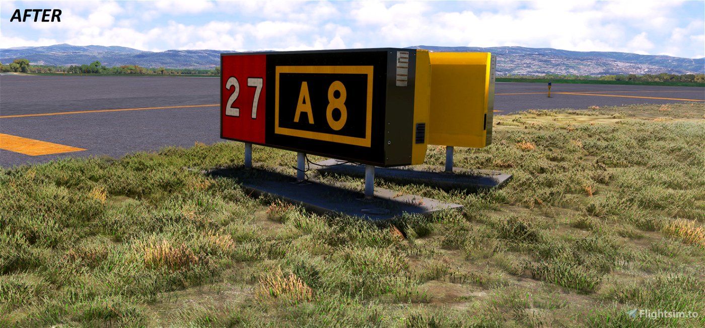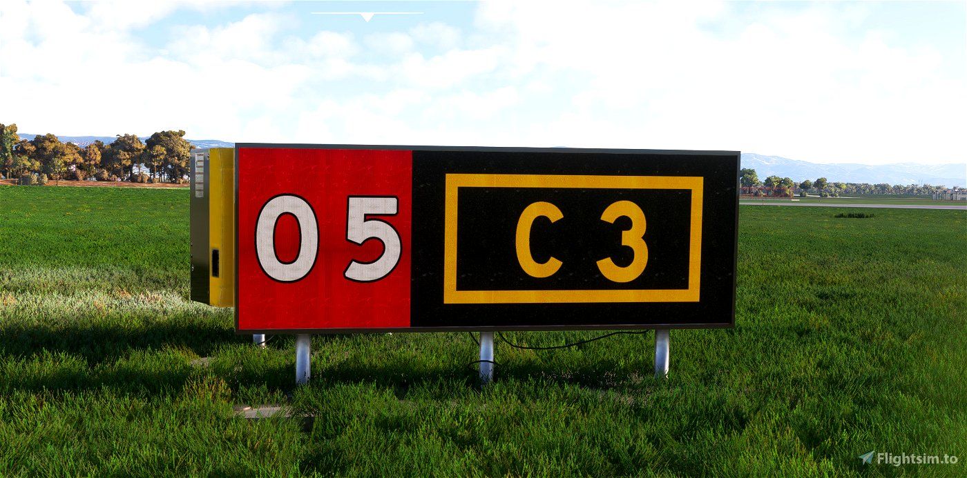 The Realistic Taxi Signs Texture Pack is an add-on that upgrades the default taxi signs in Microsoft Flight Simulator with high-resolution textures. This pack aims to enhance the visual quality and accuracy of airport taxi signs, making them clearer and more realistic. It is compatible with the default Asobo / Microsoft airports and is designed to replace them. For more details, you can visit the addon's page on Flightsim.to here.