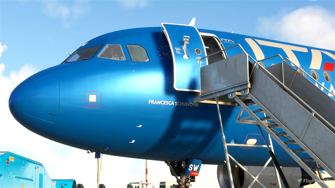 The Package ITA Airways w/Cabin | Fenix A320 V2[8K+4K] CFM is a detailed replica of the real-world aircraft registrations EI-DTO and EI-DSW with both 8K and 4K texture options created by GabrielsCorazza for the Fenix Simulations A320.