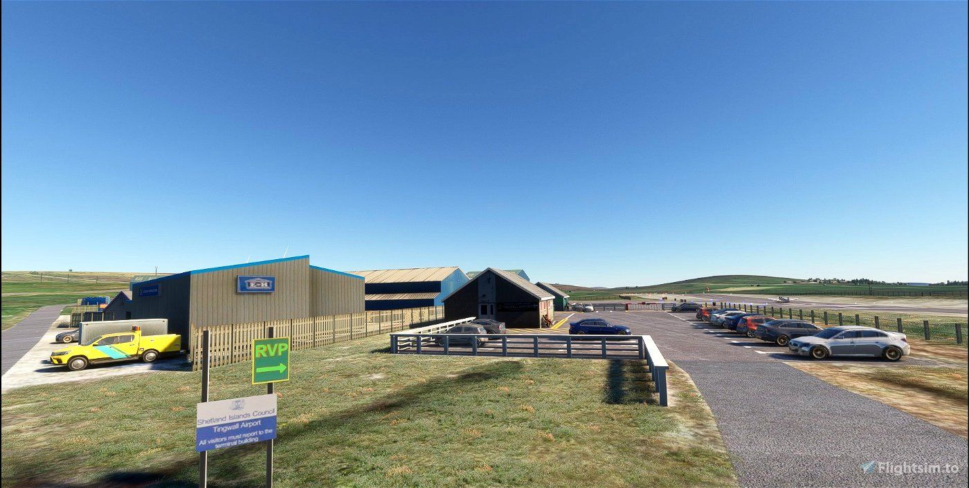 Tingwall Airport is situated on the Mainland Island of the Shetland Islands, a few miles from the main town of Lerwick. This is a detailed remake of the default airfield with custom made models placed on the airfield and covering the surrounding local business'. The airfield is operated by Shetland Islands Council who operate daily services to the Islands of Foula and Fair Isle. For more, visit the addon's page on Flightsim.to here.