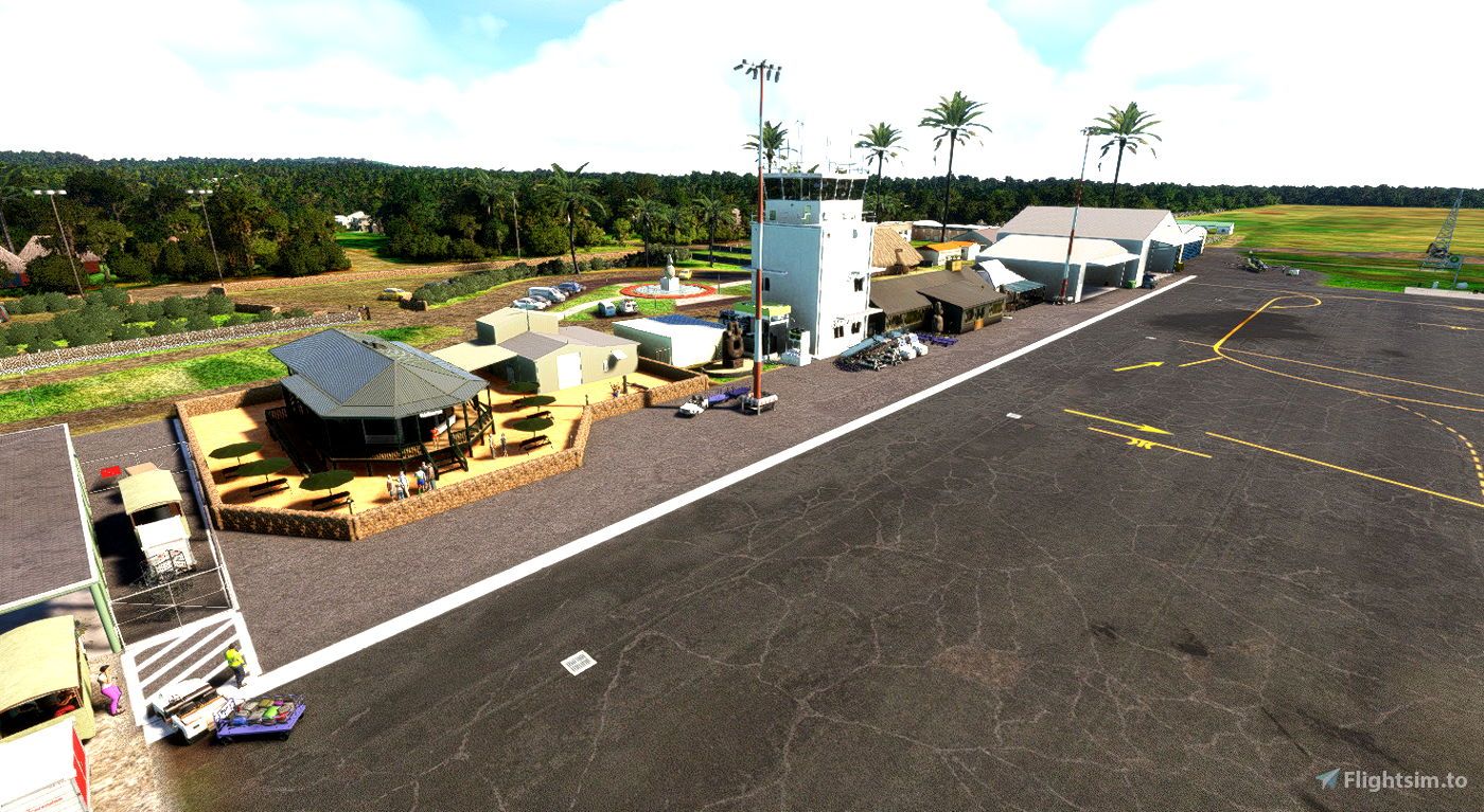 Hihifo Airport is the primary airport serving Wallis and Futuna, an overseas territory of France located in the South Pacific. This free add-on created by CoolGunS enhances Hihifo Airport (NLWW) on Wallis Island in French Polynesia. It improves the scenery around the airport with custom ground textures, 3D models of resorts and bungalows, and over 500 hand-placed objects like palm trees and buildings. You'll also find a private residence area with a pier, helipad, and pub near the coast, accessible by following a dirt road from runway 26. The add-on includes a GSX profile for ground services compatibility, but requires the free UK2000 Scenery Library from the MSFS Marketplace to function fully. For more details, you can visit the addon's page on Flightsim.to here.