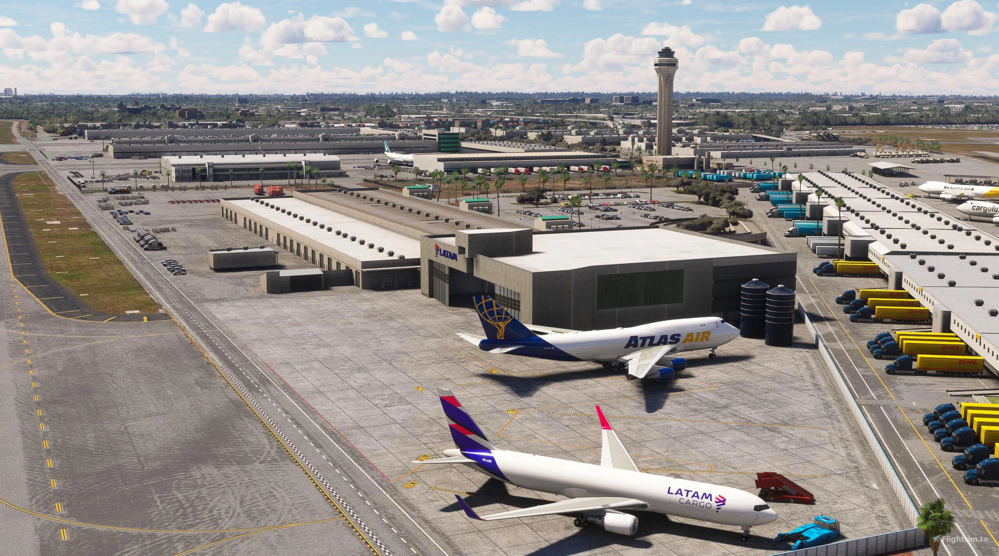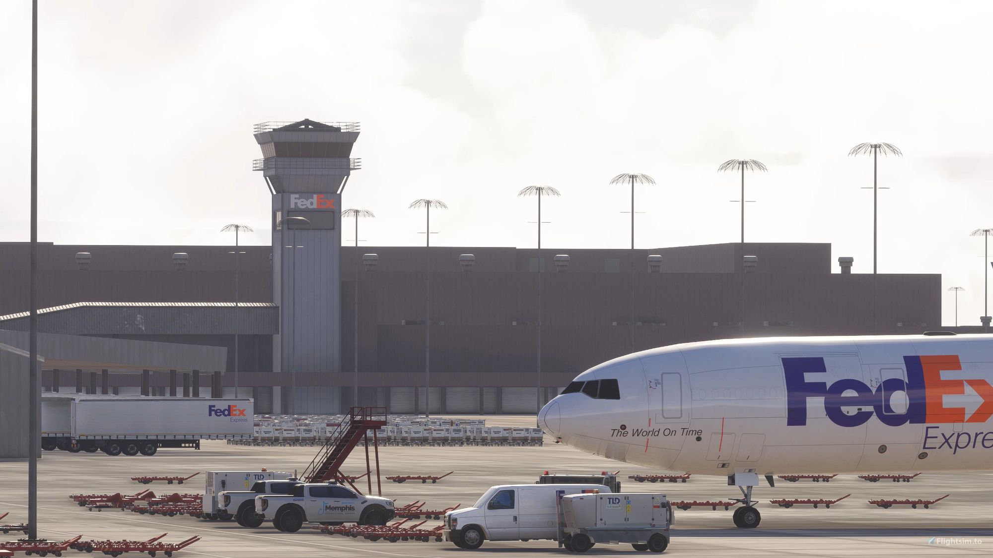 Known as the global hub of FedEx Express, Memphis International Airport has been significantly updated for MSFS 2024 following its earlier MSFS 2020 release. The new version introduces improved ground textures, updated materials, dynamic lighting with realistic color temperatures, and optimized performance through complete LOD integration.