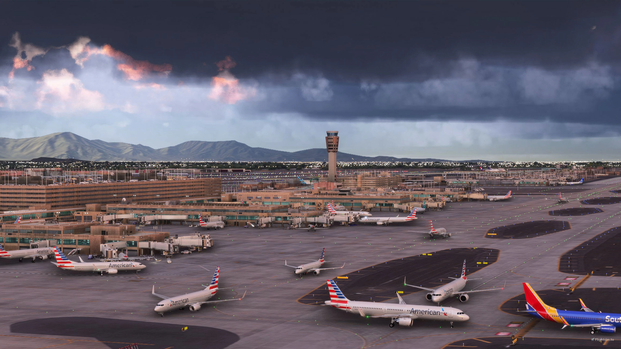 All terminal concourses are fully modeled with interior detail, complemented by updated pavement textures, custom jetways, and accurate lighting temperatures that mirror the real-world airport’s warm desert environment. Read more about Sky Harbor International on the Flightsim.to Store.