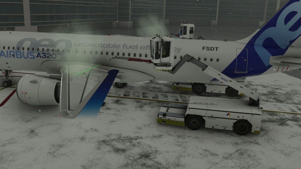 If you need pushback from the gate, you can request a realistic pushback service with a fully animated crew and a bypass pin simulation. The pushback automatically reads the airport files to always push the aircraft to the line in a direction the user selects. If you wouldn’t happen to like where the truck is pushing you to, you can always edit the track. Your changes are then saved for the next time you fly out of the spot.