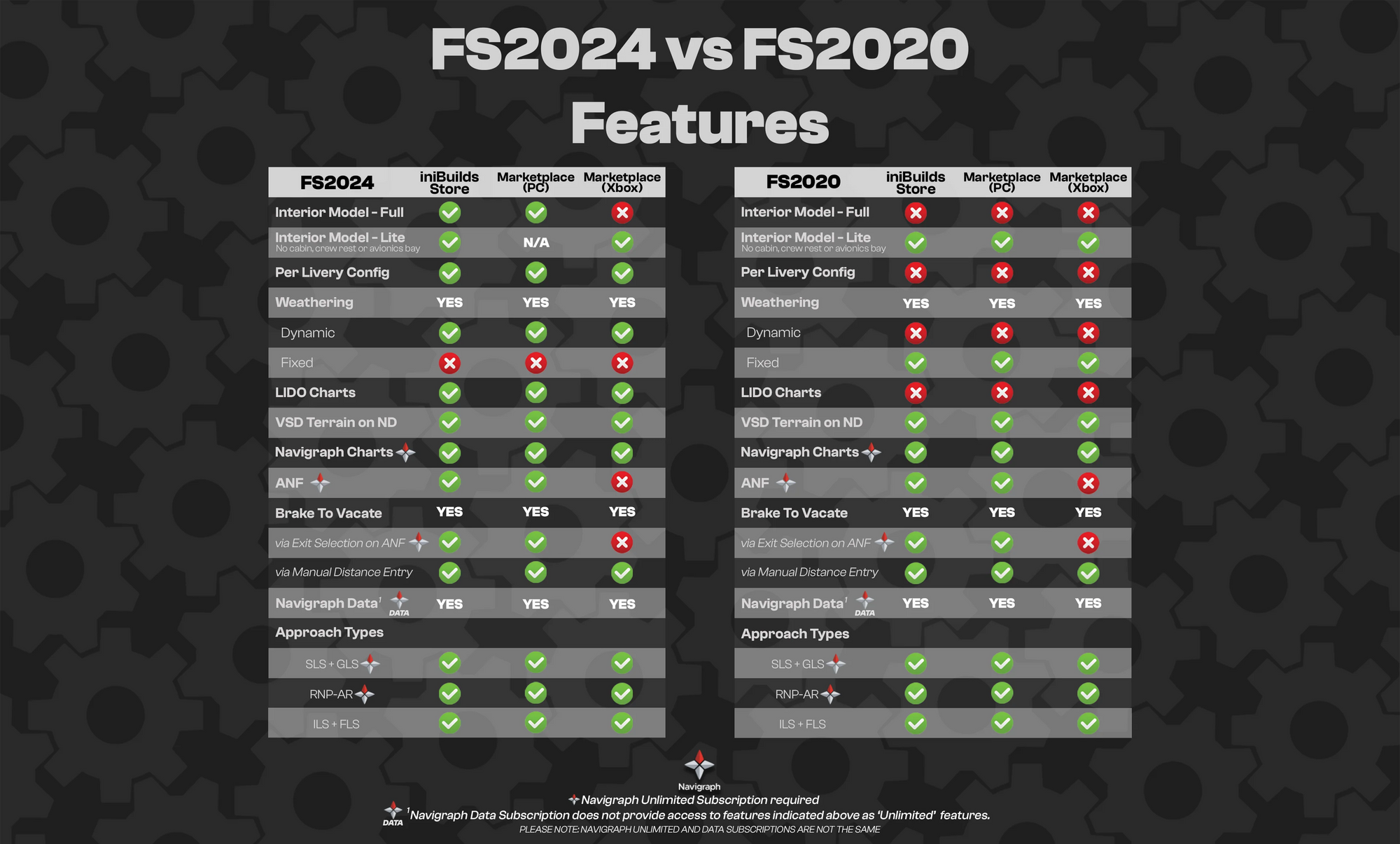 Microsoft Flight Simulator 2024 pilots can access several exclusive features. Navigation gets most important upgrades through detailed chart integration. The Electronic Flight Bag works with both LIDO Terminal Charts and Navigraph. The system also makes shared SimBrief integration possible with in-sim flight plan downloads and database updates. The aircraft comes with base Navigraph data using AIRAC cycle 2303.