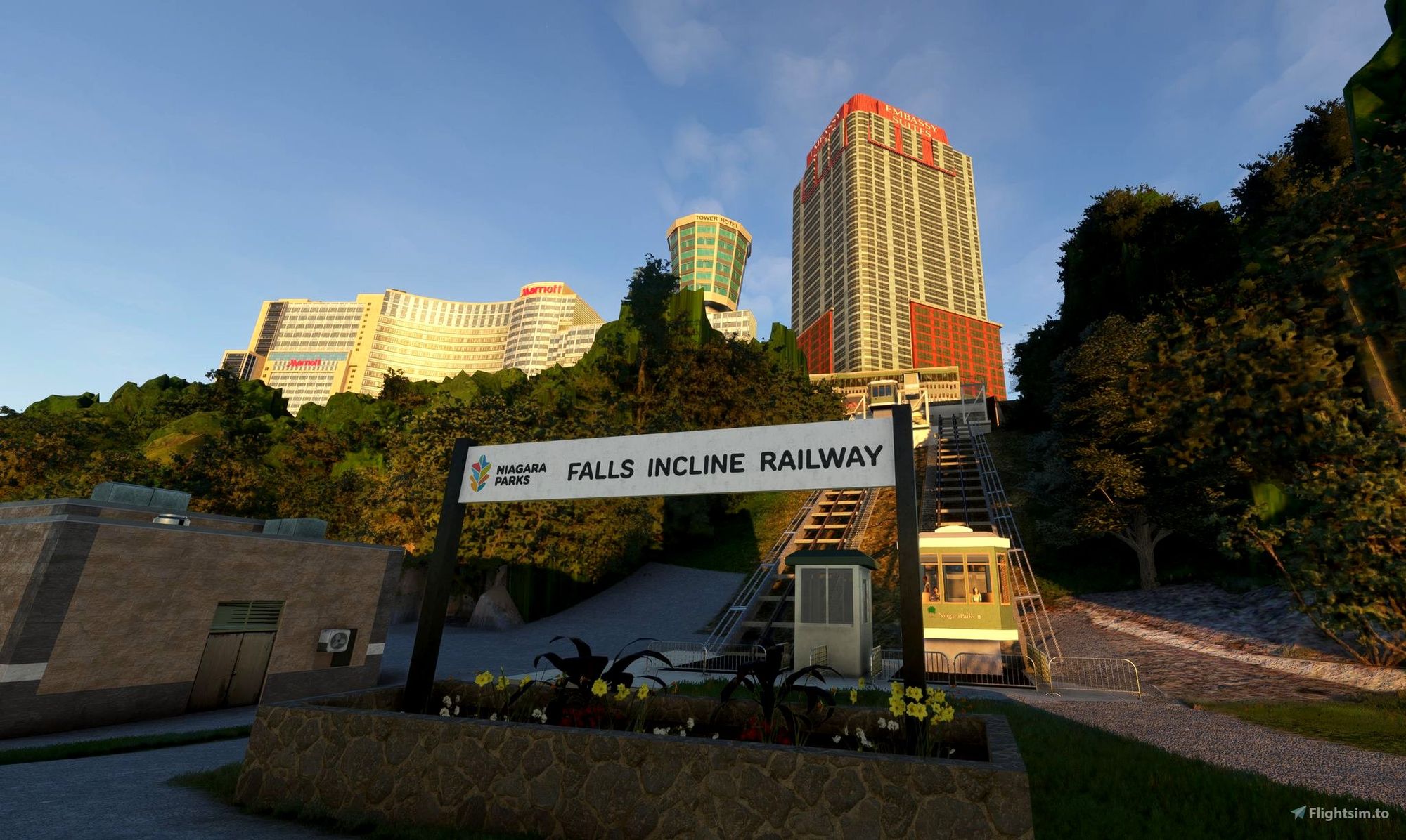 There are plenty of other features to discover too, including animated tourist boats, an animated incline railway, and city cruises funicular railway. There's also an animated zipline, Sky Screamer ride, and Whirlpool Aerocar located at Marineworld, just south of the falls. The add-on even includes an animated freight train that crosses the Whirlpool Rapids Bridge and passes by the heliport. With so many details to explore, this add-on is sure to delight anyone who loves Microsoft Flight Simulator. It's a fantastic recreation of one of North America's most iconic landmarks and the surrounding city. So, if you're looking for a new challenge, be sure to check out the Niagara Falls City Pack & Heliport on Flightsim.to.