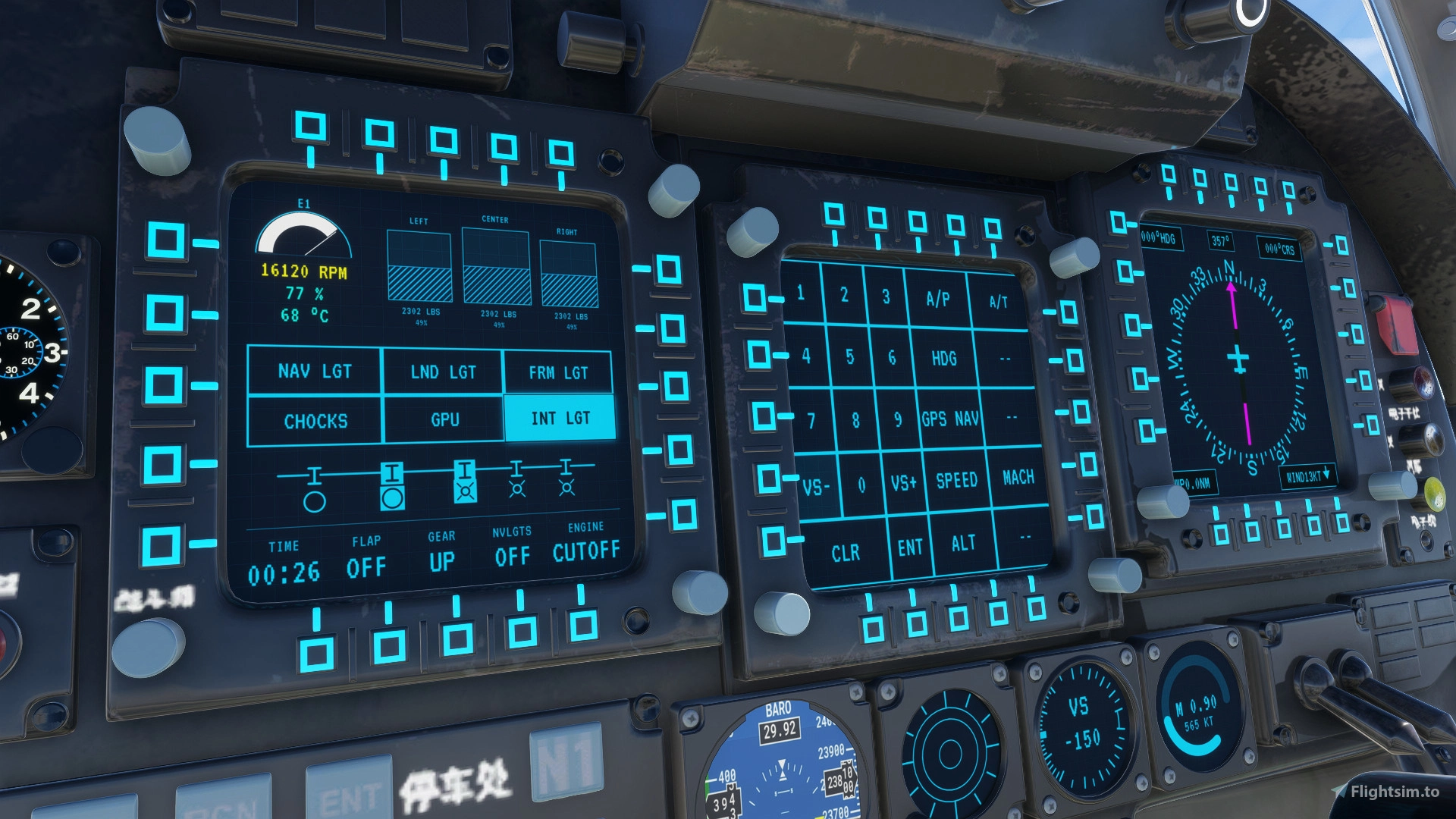 The aircraft’s enlarged dorsal spine houses additional avionics and mission systems, while the rear seat allows for a dedicated weapons systems officer during complex strike or air-to-air missions. MarineRM’s adaptation features improved flight physics, a fully functional autopilot, and an easy cold start procedure through its integrated MFD interface. The aircraft includes animated weapon bays, a detailed 3D cockpit with functional HUD and MFDs, and night lighting suited for both training and operational-style missions. Despite the visual fidelity, MarineRM emphasizes that the J-10S is not designed as a study-level simulation but rather as a visually rich, performance-friendly jet focused on smooth gameplay across platforms.