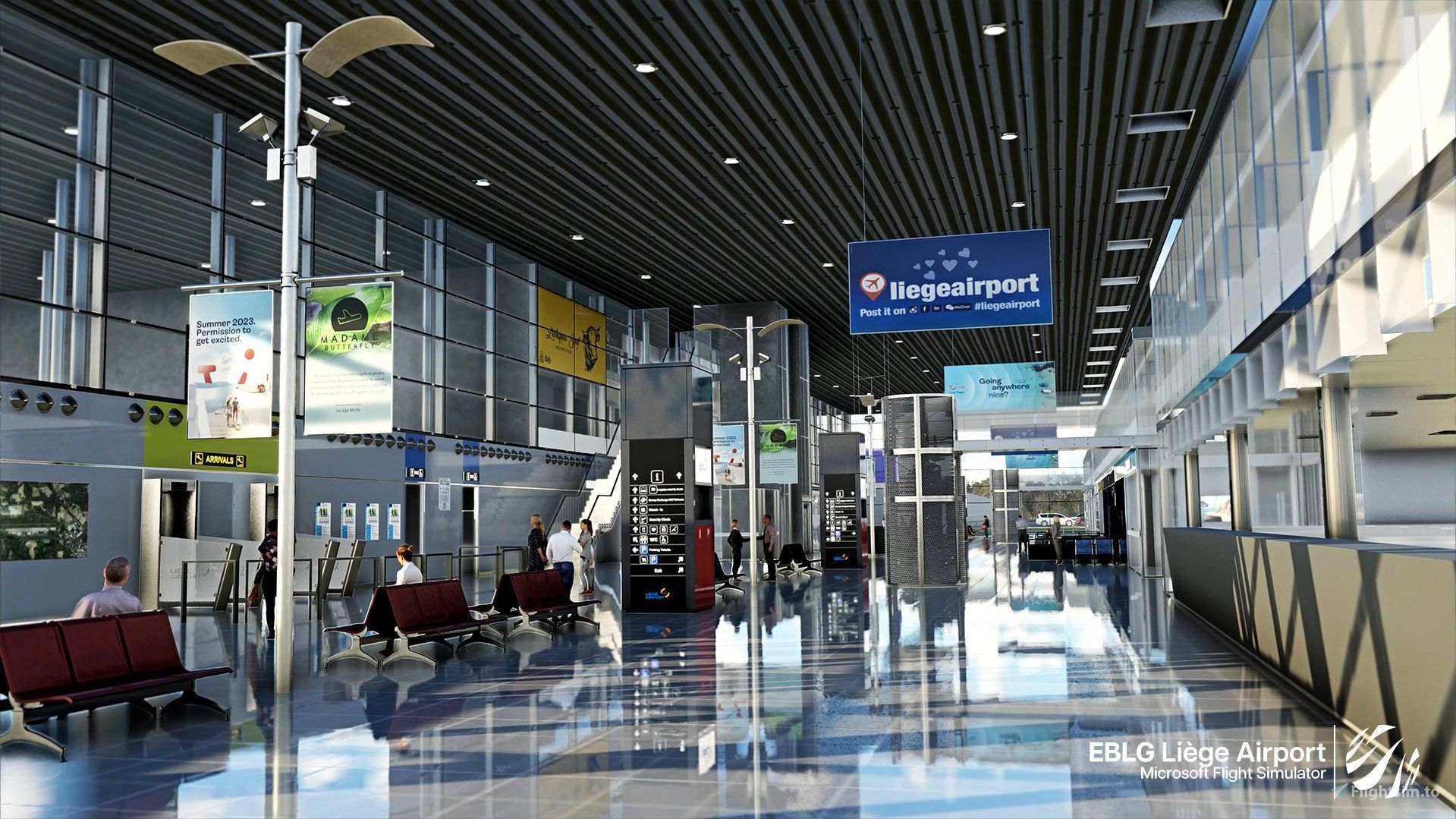 The EBLG - Liège Airport package by MM Simulations features an accurately modeled terminal and interior, custom night lighting, custom parking positions that match real life, custom surroundings, custom people, and animated objects, and PBR materials. These details will help bring the airport to life and make it a more immersive experience for Microsoft Flight Simulator users.