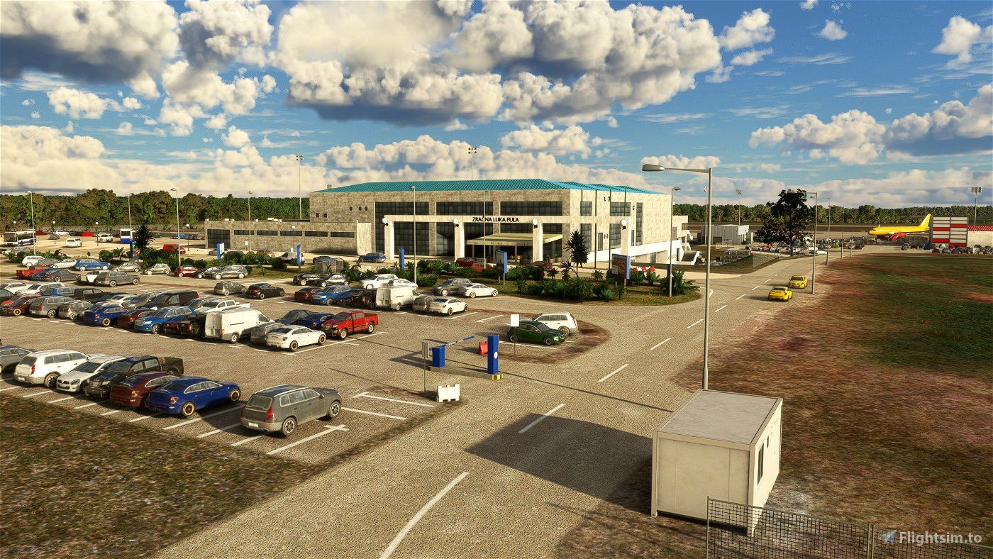 The first thing you'll notice when you install LDPL - Pula Airport is the enhanced apron area. With a total of 11 parking spots, including one additional spot not currently available at the real airport, you'll have plenty of room to park your aircraft and enjoy the bustling atmosphere. Custom buildings grace the airport. From the terminal building to support structures and hangars, every detail has been recreated.