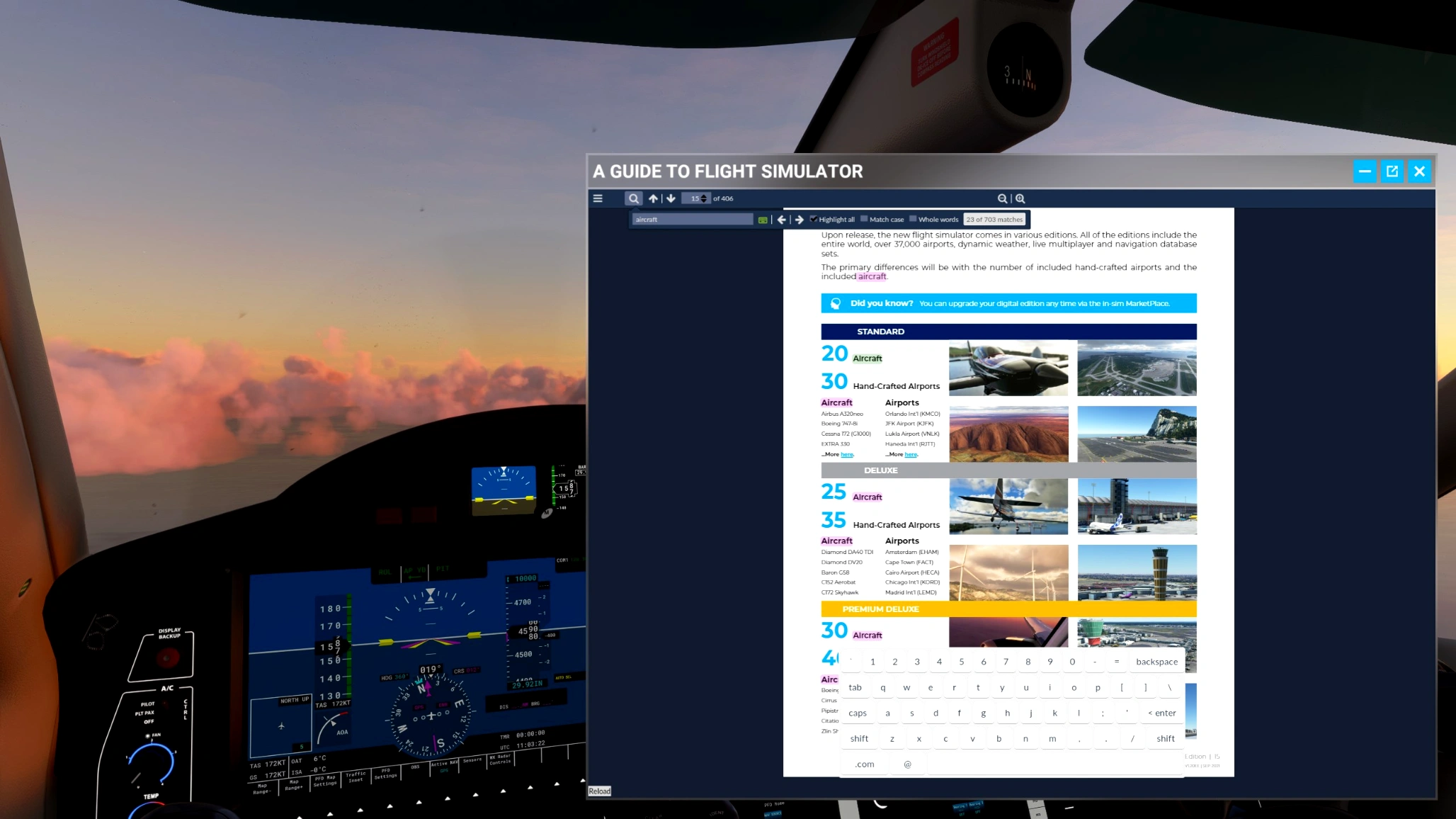 A Guide to Flight Simulator: Extended Edition: While Microsoft Flight Simulator lacks any manual and documentation out of the box, SoFly has a solution to it. Learn everything from the basics to advanced piloting skills with this comprehensive and visually stunning digital guide. As the simulator continues to change, so will the guide. Regular and free updates mean you will always have the best information to hand. "This is the manual missing from the release of the simulator", few customers claim.
