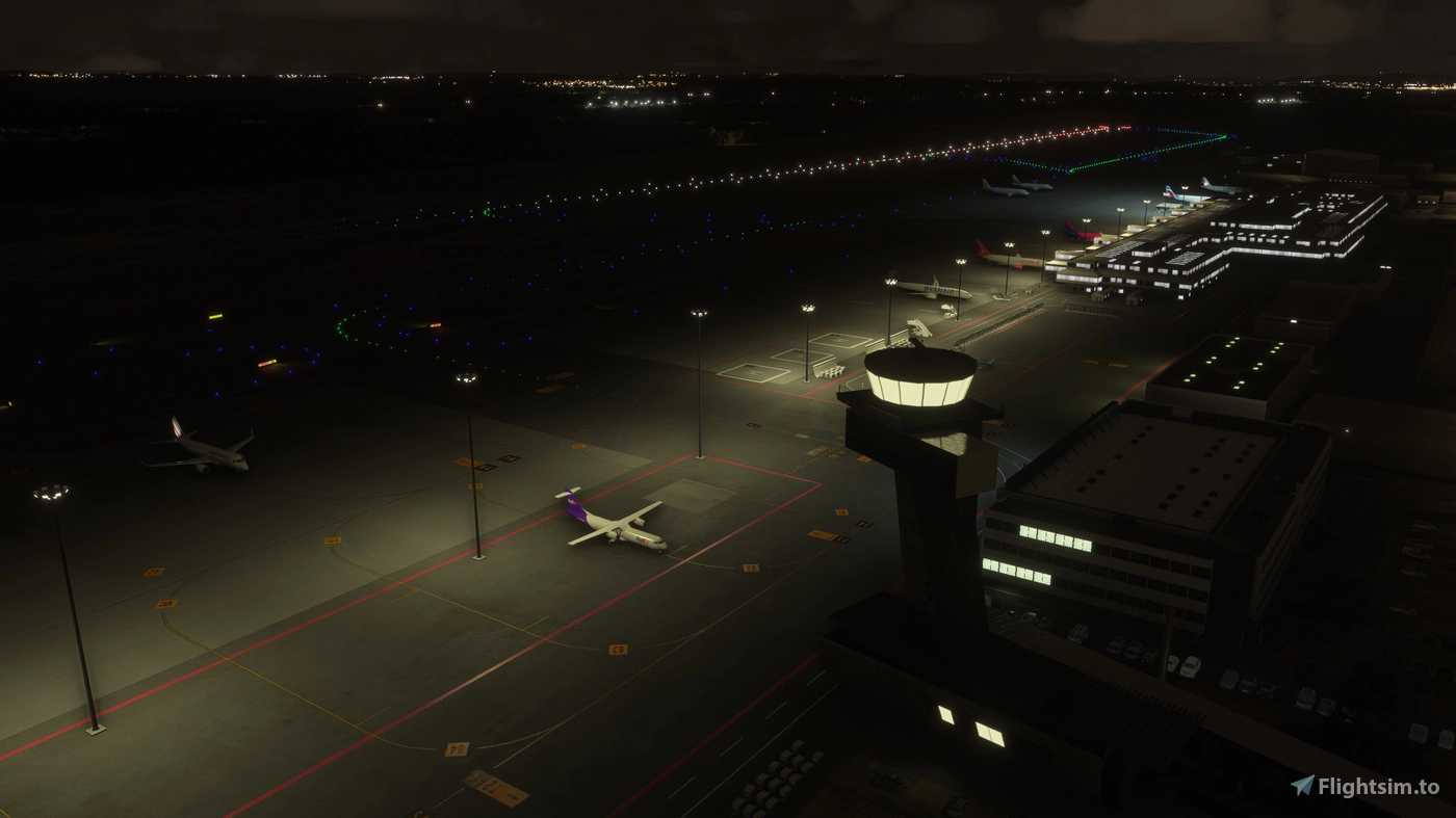 Gate17’s work focuses on rebuilding Nuremberg Airport from the ground up to better reflect its real-world counterpart. The scenery features an accurate airport layout with corrected elevation profiles, parking stands, and taxiway signage. Several custom-modeled buildings are already included, such as the control tower, Ryanair and Aero-Dienst hangars, and the DRF Luftrettung helicopter base. Future updates are expected to add the terminal complex and other nearby facilities.