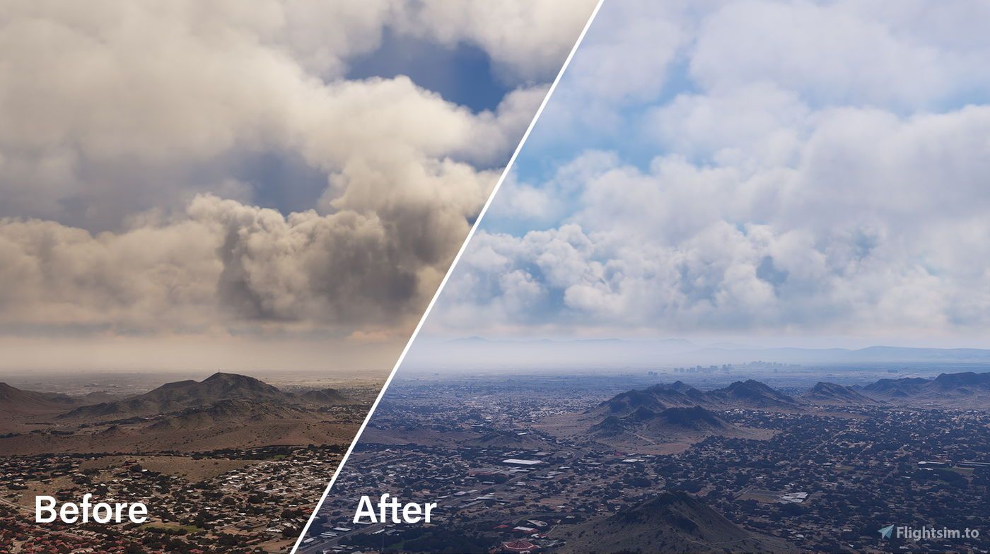 One of REX Atmos’s standout features is its ability to address the common issue of dark, unrealistic "ash clouds" that sometimes appear in the simulator. These are replaced with more natural, visually stunning clouds that can be fine-tuned according to personal preferences. Additionally, the utility offers advanced atmospheric features like true Rayleigh scattering and an ozone function, which bring even greater realism to how light and color interact with the virtual environment.