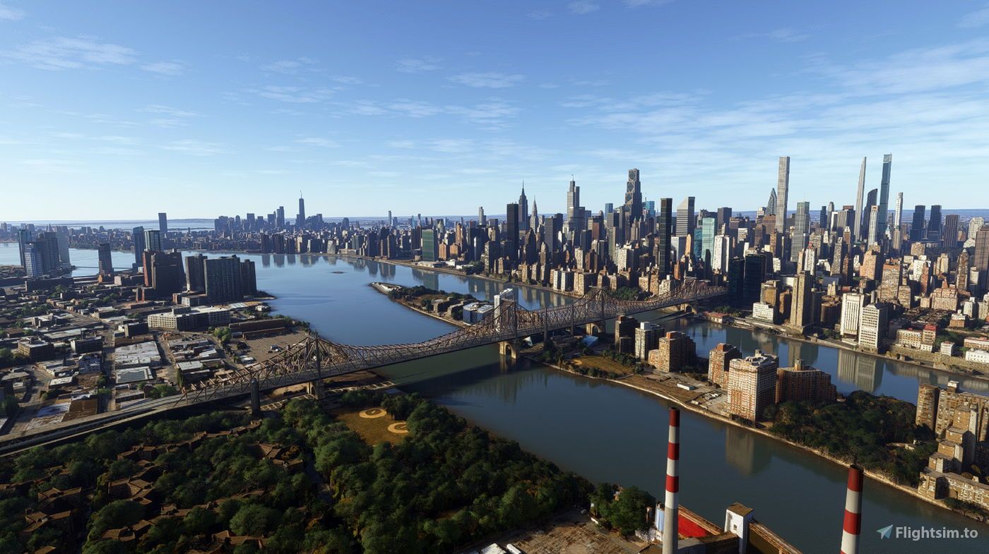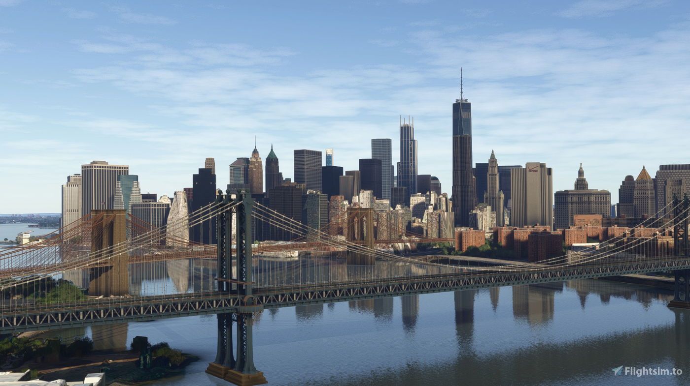 More than 160 buildings now feature PBR and 4K texture materials, alongside better color adjustments and night lighting compared to the previous version. The bridges connecting Manhattan, such as the Manhattan Bridge, Brooklyn Bridge, Williamsburg Bridge, and Queensboro Bridge, are now highly detailed and include animated moving cable cars.