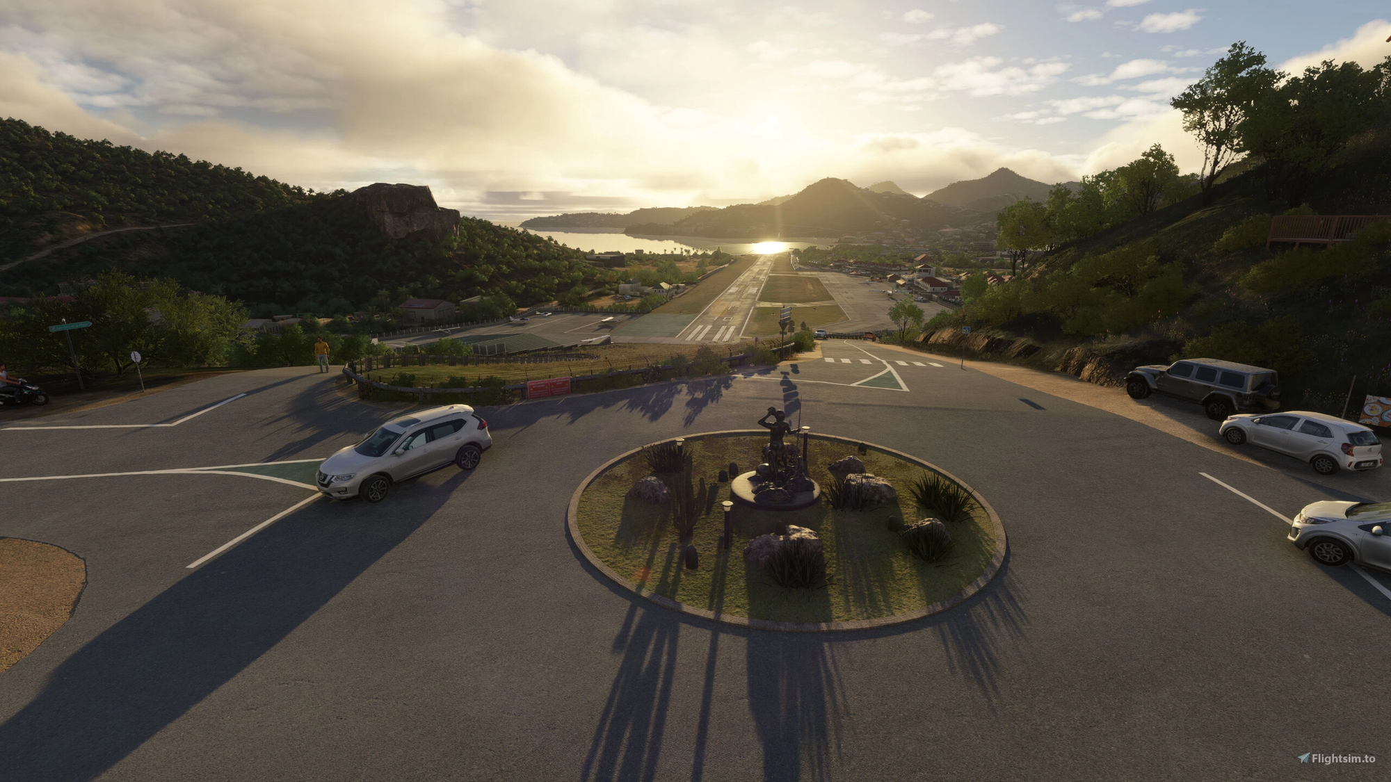 The add-on captures the unique environment of St. Barth’s by combining accurate terrain elevation and slope adjustments with custom 3D modeling. The approach over the hill has been carefully recreated, allowing you to follow the same dramatic descent that characterizes real operations into runway 10. On the departure side, the scenery blends seamlessly into the island’s coastline, with turquoise waters, detailed beaches, and animated boats providing the distinctive Caribbean atmosphere.