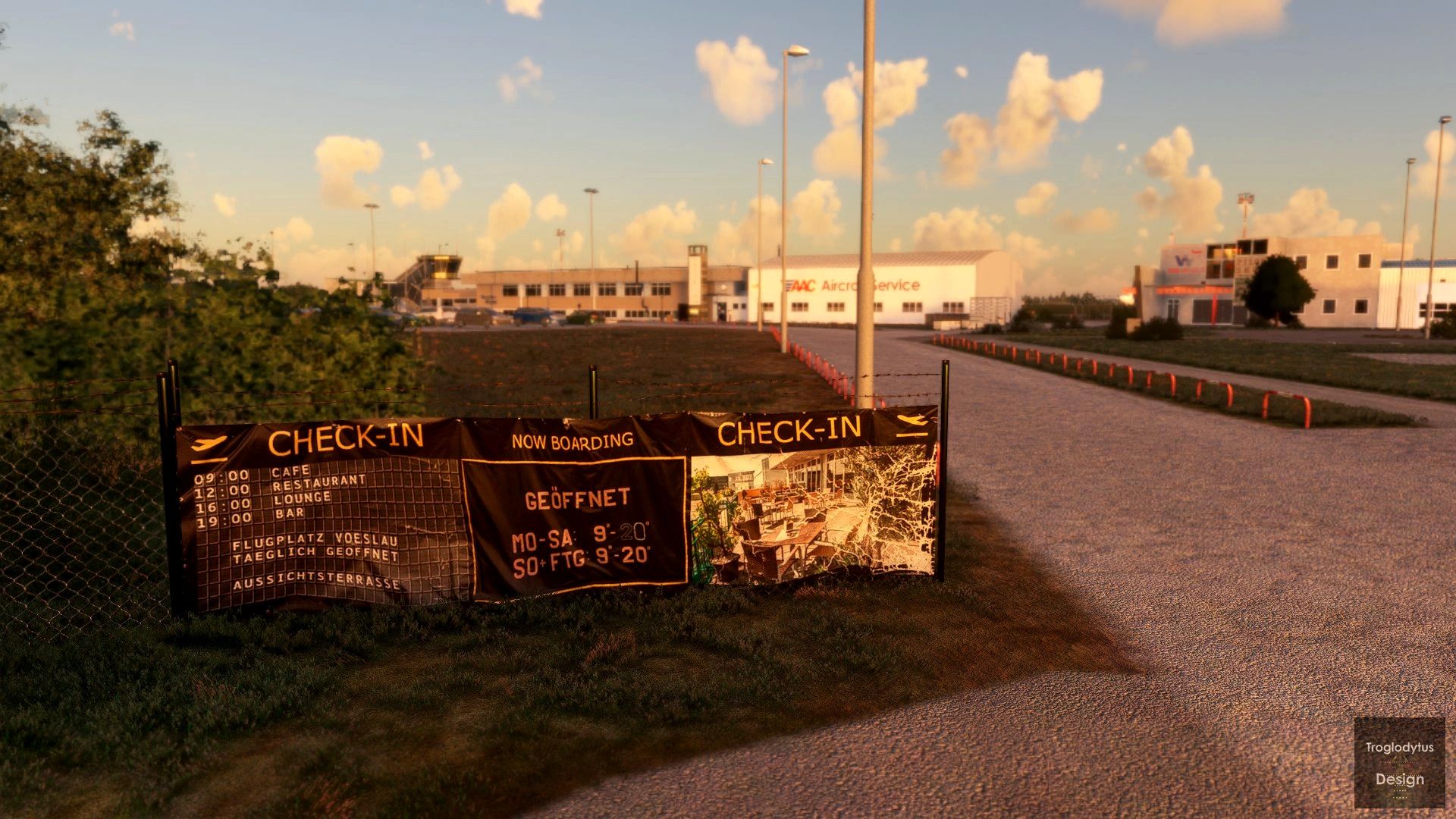 Vöslau Airfield (German: Flugplatz Vöslau, ICAO: LOAV) is a public airfield located 4 kilometres (2.5 mi) east of Bad Vöslau, Lower Austria, Austria. It is also known as Flugplatz Vöslau-Kottingbrunn in German. It is one of the largest General Aviation Airports in Austria and widely used by pilots commuting to Vienna while avoiding the International Airport Schwechat. Troglodytus Design's brand new product is available for $7.99 on Flightsim.to, being their first premium product ever.