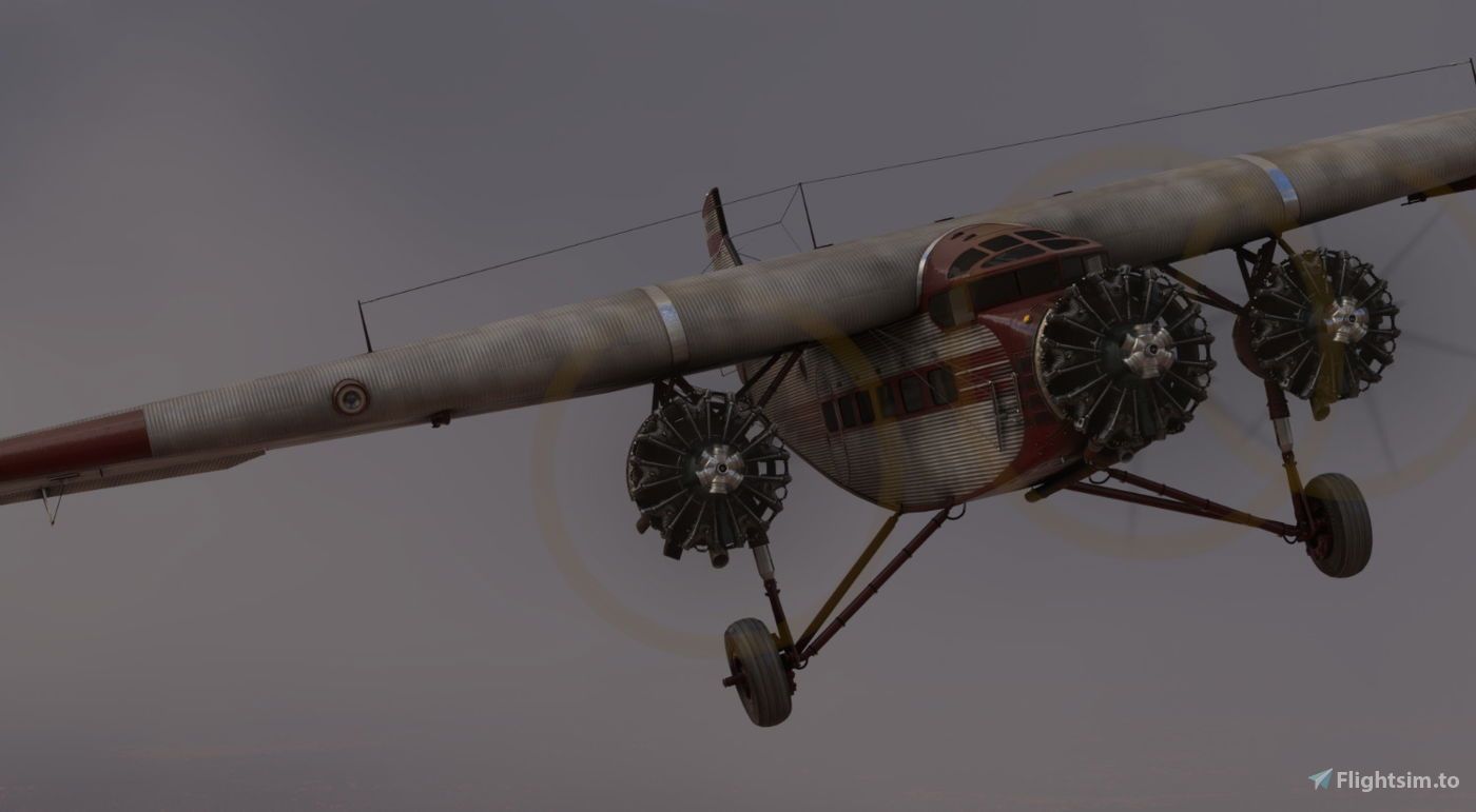 The Ford Tri-Motor, an American aircraft produced by Ford from 1925 to 1933, was a significant development in early aviation. Initially designed for civil aviation, it was also used in military operations. Known for its all-metal construction and corrugated aluminum alloy body, it was influenced by the Fokker F.VII trimotor and Junkers' designs. TukanFlightSim has recreated the Ford Tri-Motor 5AT for Microsoft Flight Simulator. This add-on includes detailed exterior and interior 3D models, textures, and materials, with adjustments made to geometry and textures to balance visual quality and performance. The cockpit features period instruments and uses PBR (Physically Based Rendering) techniques for realistic light and shadow effects.