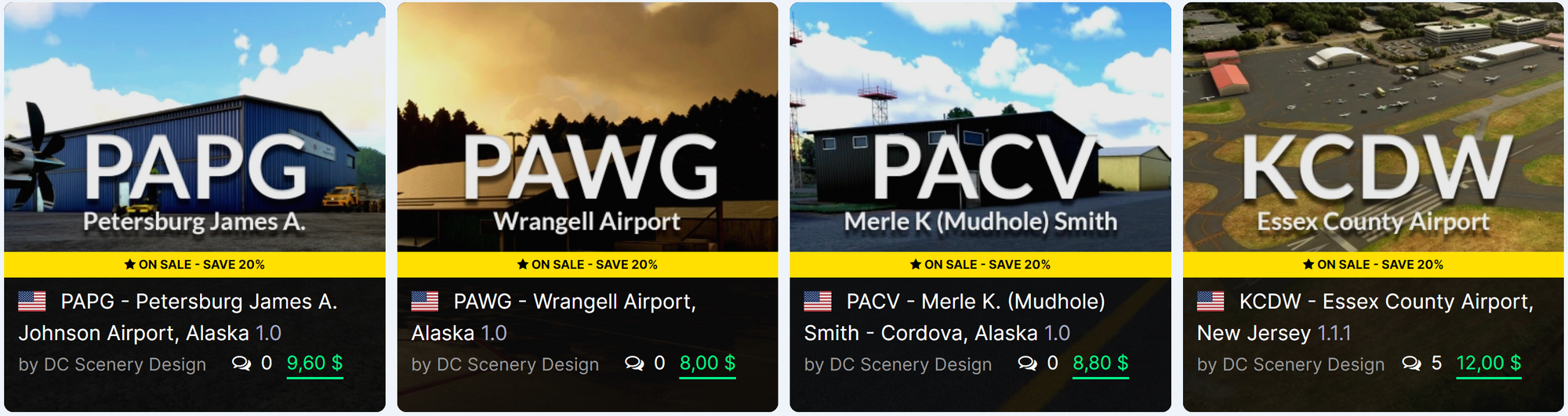 DC Scenery Design has generously discounted their entire product range as well. Discover X06, KCDW, S20, PAKW, PAPG, PAWG and many more US airfields discounted at 20%.