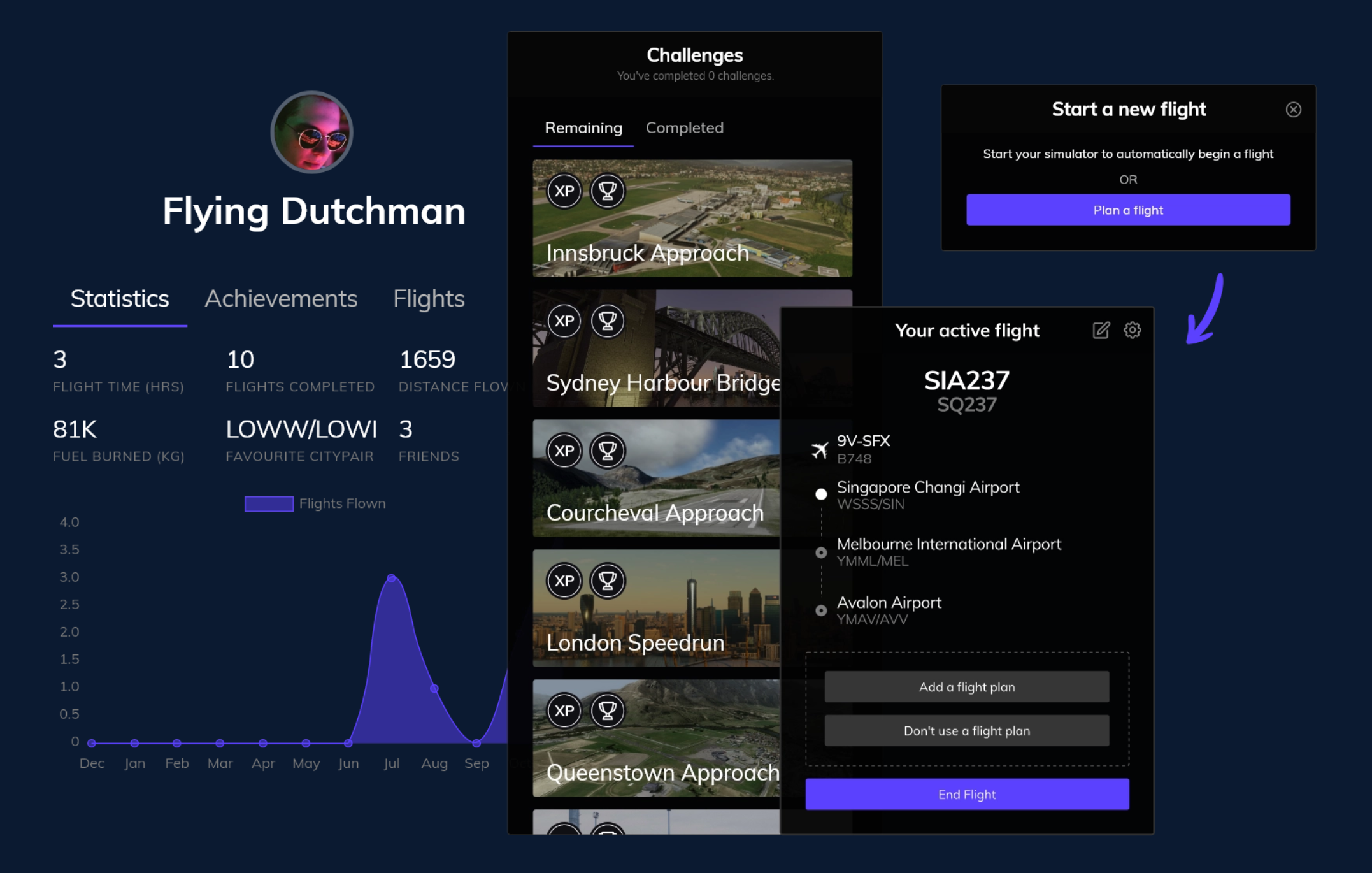 Volanta is an easy-to-use smart flight tracker that integrates all your flight data across all major sims. It's clean, easy-to-use interface is to make the big difference. ORBX has been lately working on a personal flight tracking app for Microsoft Flight Simulator, X-Plane, Prepar3D and FSX - it's called Volanta. As there is already similar software available, for example SimToolkitPro or projectFLY, Volanta is marketed as "giving you more reasons to fly". It's clean, easy-to-use interface is to make the big difference, alongside with many nice-to-have features, making Volanta almost a "must-have" tool. After months of closed beta testing, Volanta has been officially launched a few days ago, on January 30th 2021. Volanta is free to download and use, but there will also be few premium features that will require payment.